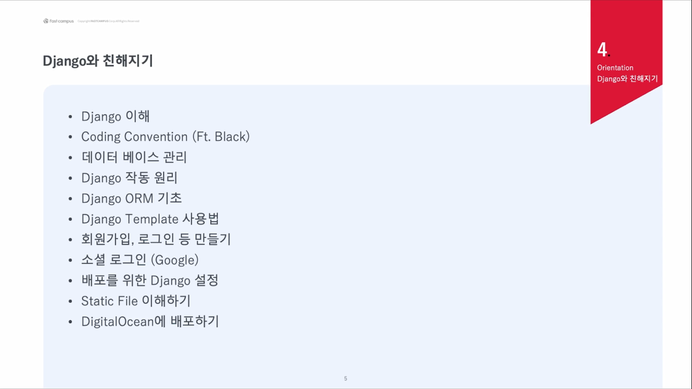 아래의 장고 프로젝트 만드는 순서는 여기 강의내용 아님