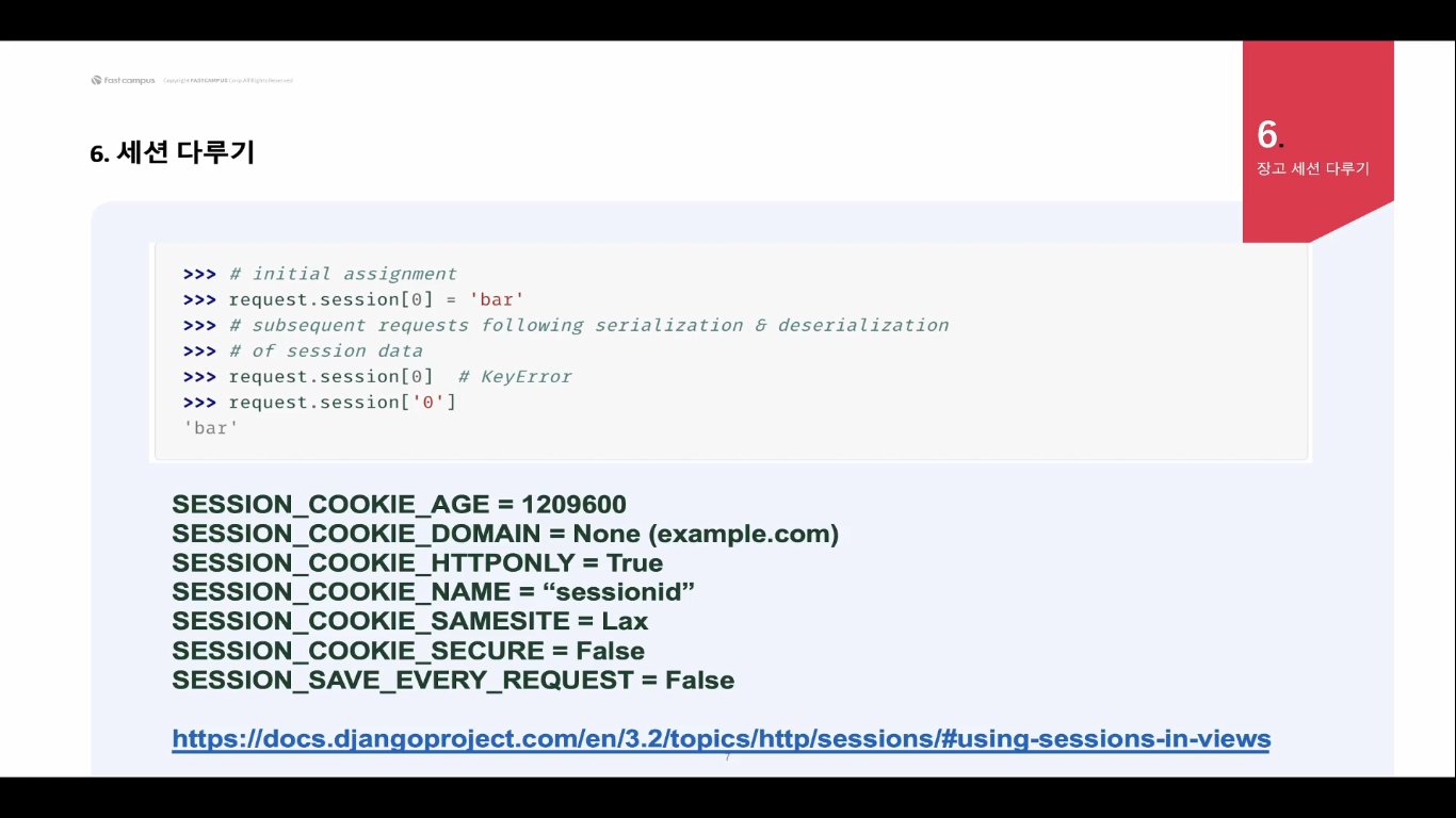 SESSION_COOKIE_AGE = 1209600 (초단위 2주)